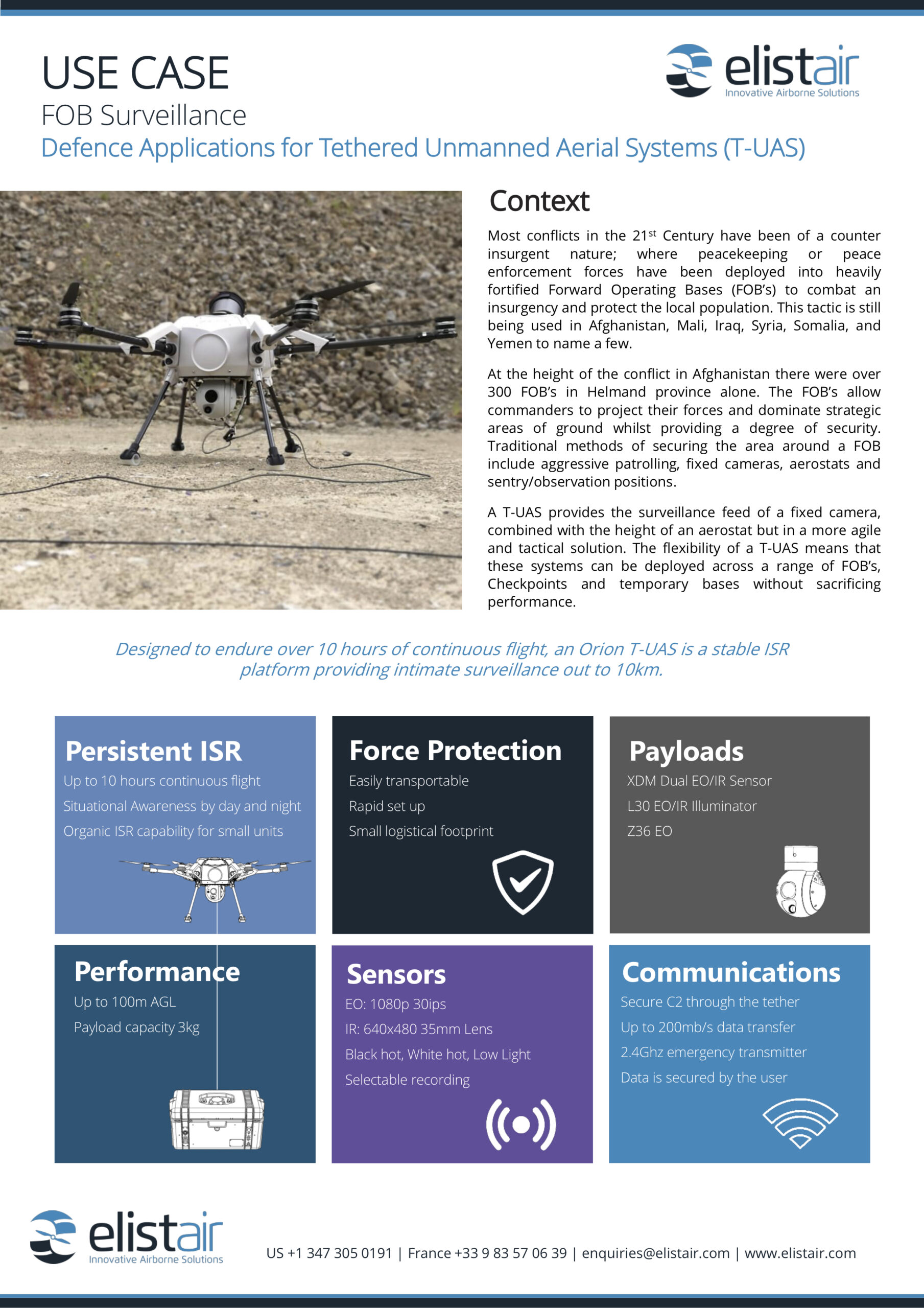 USE CASE FOB Surveillance Defence Applications for Tethered Unmanned Aerial Systems (T-UAS)